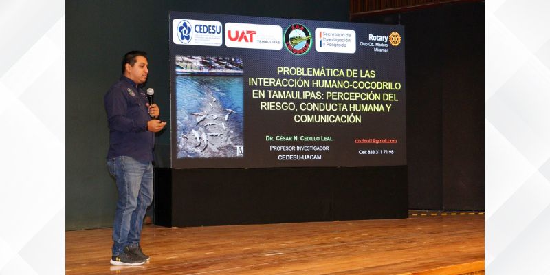La Universidad Autónoma de Tamaulipas (UAT) llevó a cabo la conferencia “Problemática de las interacciones humano–cocodrilo en Tamaulipas: percepción del riesgo, conducta humana y comunicación social”, un espacio de reflexión académica que vinculó el conocimiento científico con los desafíos sociales y ambientales del entorno regional.