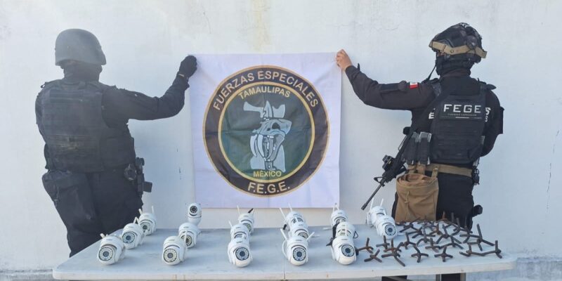 Ciudad Victoria, Tamaulipas.– Fuerzas Especiales de la Guardia Estatal aseguraron 17 cámaras de videovigilancia instaladas en diferentes puntos de El Mante.