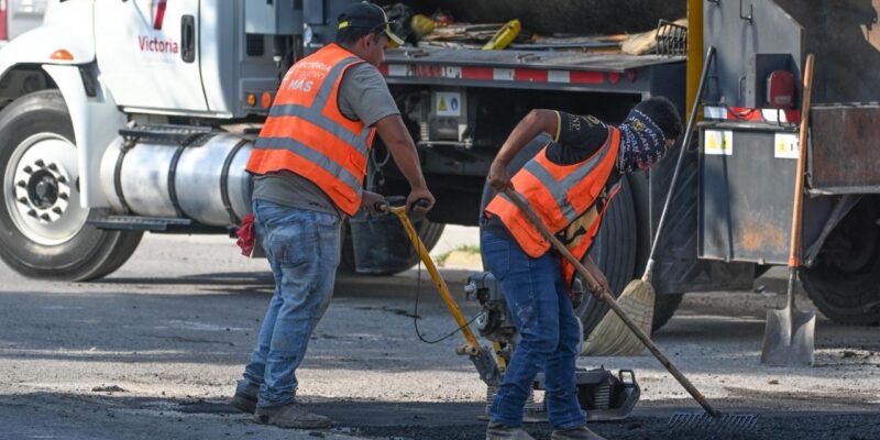 Cd. Victoria, 18 de octubre 2025.- Las brigadas de bacheo que mantiene el gobierno de Victoria no se detienen, y este sábado llevaron a cabo trabajos de rehabilitación de pavimento en tres importantes vialidades de la ciudad.