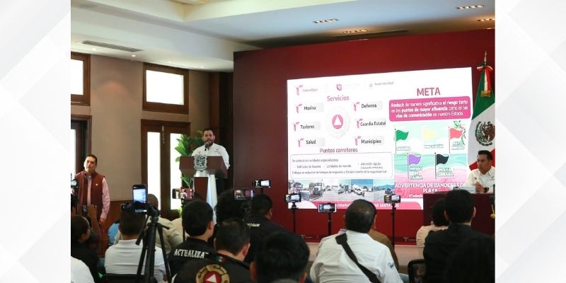 Durante la presentación de la Estrategia Interinstitucional de Seguridad y Asistencia Turística, Semana Santa 2026, que estará en operación hasta el próximo 18 de abril, y acompañado por los secretarios de Seguridad Pública, Turismo, el coordinador estatal de Protección Civil y el titular del Centro de Regulación de Urgencias Médicas, el gobernador indicó que se trata de un amplio despliegue que contempla la movilización de elementos, recursos institucionales y distintos equipos para brindar la mejor atención a nuestros visitantes.