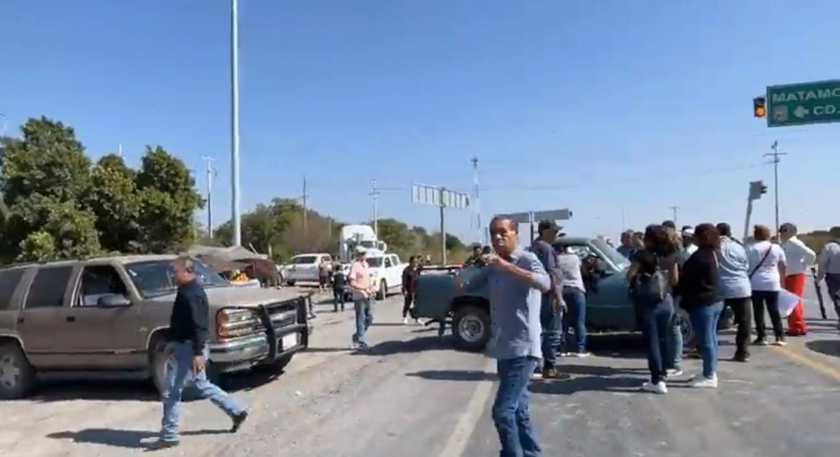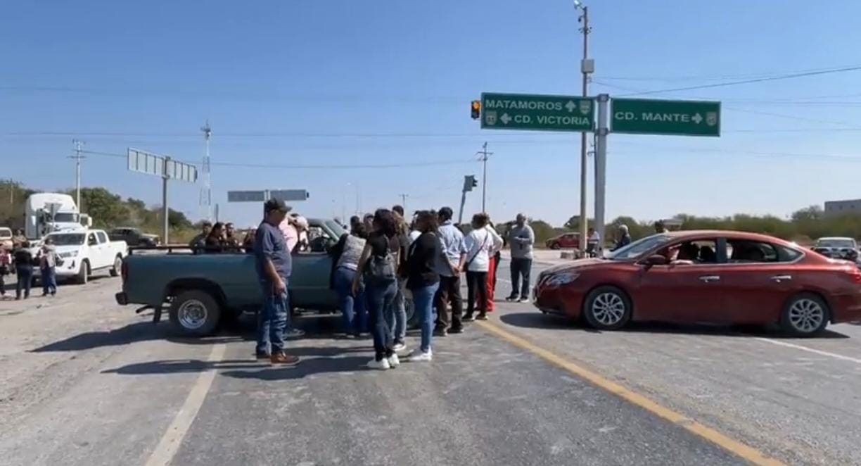 Ciudad Victoria, Tamaulipas.- Ejidatarios de El Olmo bloquearon la carretera Rumbo Nuevo, para exigir el pago de una indemnización por las afectaciones a sus tierras durante la construcción de esta vialidad, monto que estiman en alrededor de 8 millones de pesos.