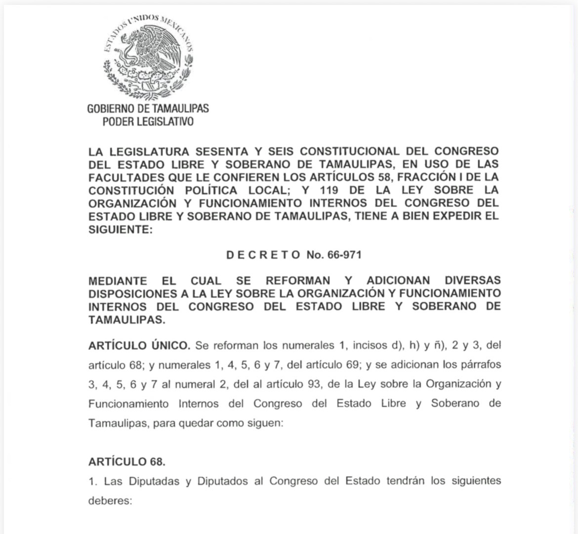 Congreso del Estado Libre y Soberano de Tamaulipas, dictada