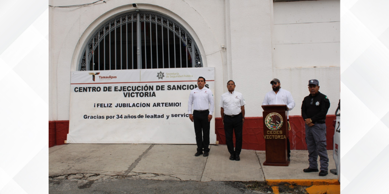 Ciudad Victoria, Tamaulipas.- El Centro de Ejecución de Sanciones (CEDES) Victoria llevó a cabo una ceremonia de reconocimiento para el custodio Artemio Rivera Cadengo, quien concluyó su servicio activo tras 34 años de labor ininterrumpida dentro de la Secretaría de Seguridad Pública de Tamaulipas (SSPT).