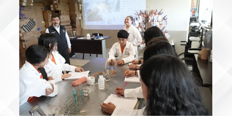 En otro punto del recorrido, sostuvo un diálogo cercano con el personal docente que participa en el curso de homologación de Unidades de Enseñanza-Aprendizaje, quienes compartieron sus experiencias y reflexiones sobre los procesos de enseñanza en el nivel medio superior. Asimismo, visitó las aulas, el laboratorio de ciencias, estands de emprendimiento estudiantil y diferentes espacios del plantel, donde convivió con alumnos destacados, reconociendo su entusiasmo, talento y compromiso con la comunidad universitaria.