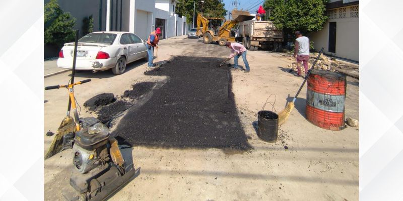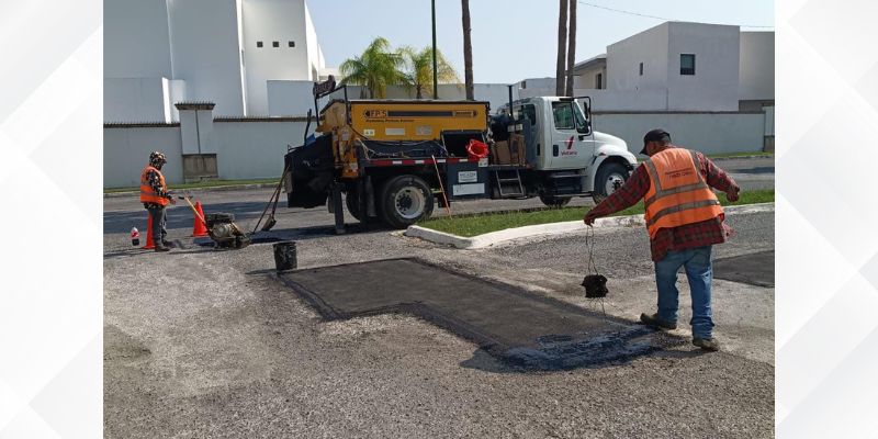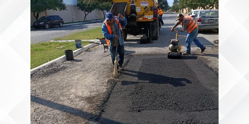 El programa de bacheo, incluyó la restauración de superficie de rodamiento en la Avenida de la Unidad, entre Carlos Adrián Avilés y libramiento Portes Gil; y calle Fundadores del Nuevo Santander, del Residencial Villa del Palmar.
