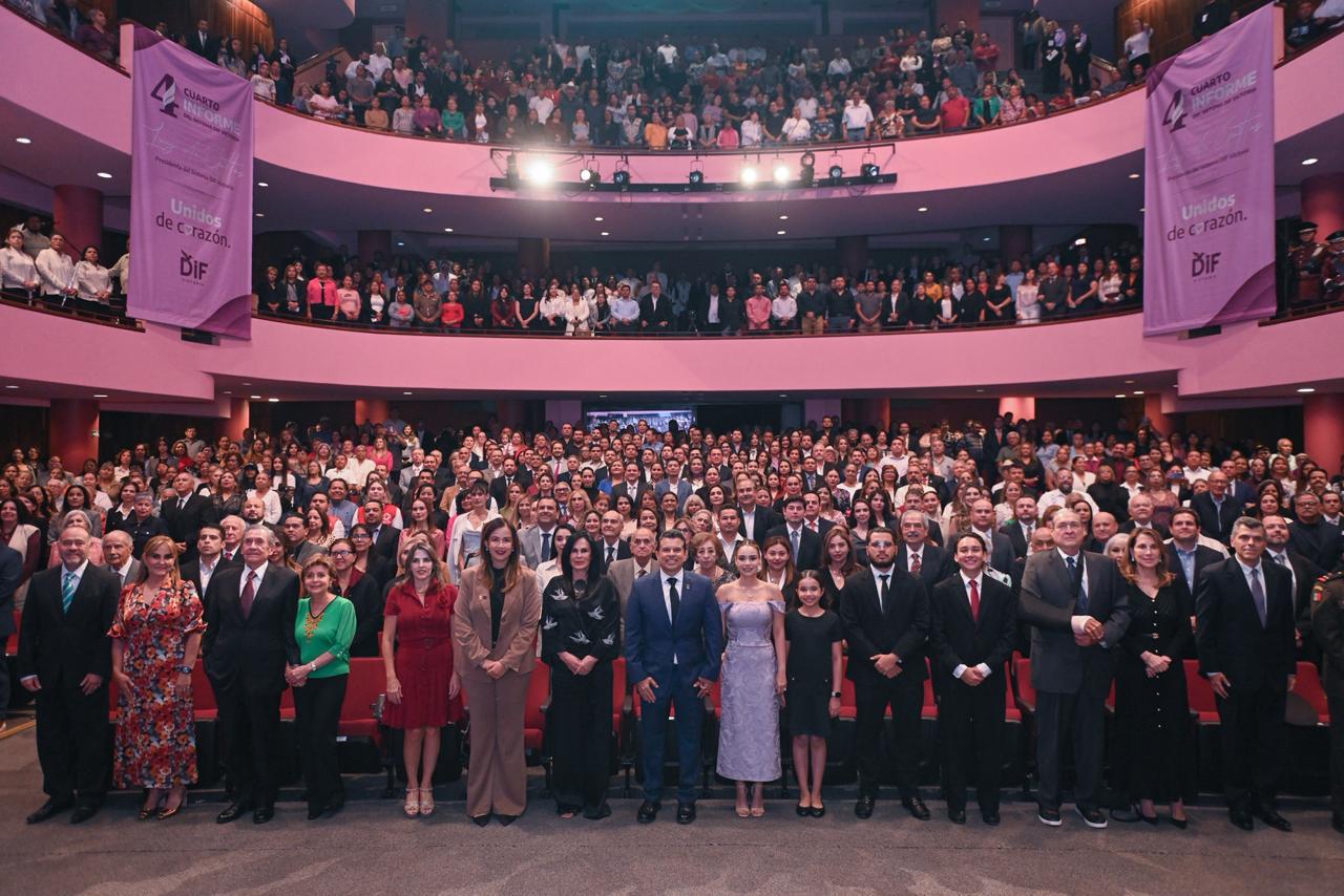 Cd. Victoria, 29 de octubre 2025. – La presidenta del Sistema DIF Victoria Lucy de Gattás, en compañía de su esposo, el presidente municipal Eduardo Gattás Báez, presentó su cuarto informe de actividades, en el que reiteró el compromiso de seguir trabajando unidos de corazón por el bienestar de las familias victorenses.