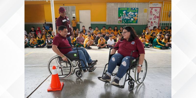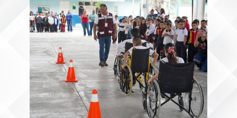 Durante la actividad, alumnas, alumnos y maestros realizan recorridos utilizando sillas de ruedas, andadores, muletas o bastón, así como ejercicios con los ojos vendados, con el objetivo de generar empatía y comprensión sobre las barreras físicas y sociales que existen en la vida cotidiana.