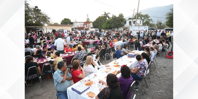 Más de 400 amas de casa, jefes de familia y niños del sector reunidos en el área deportiva, disfrutaron de juego de lotería, beneficios de las distintas áreas del gobierno municipal, apoyo de dependencias federales, cine infantil y pintura.