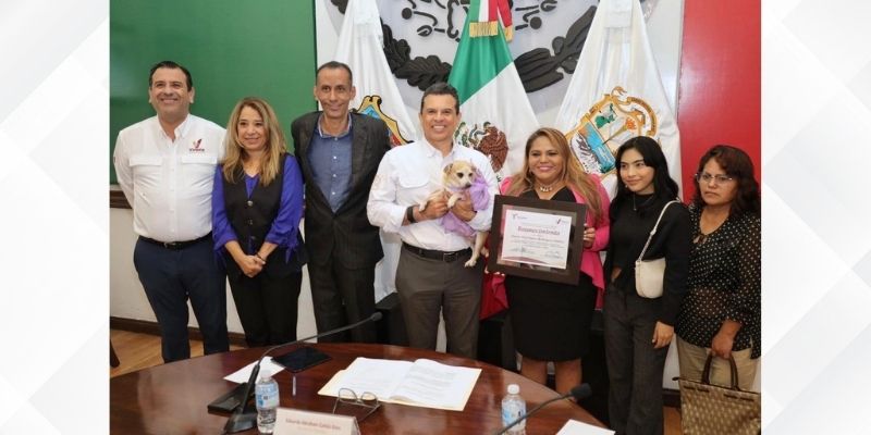 Más conocida como Mia Fressy, la ciudadana victorense acudió a la quincuagésima séptima sesión pública a invitación de la regidora Carmen Serna Mercado para recibir el merecido reconocimiento que el otorga el cabildo de Victoria por su gran labor de respeto y bienestar hacia los animales.