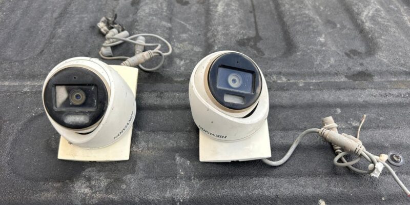 Matamoros, Tamaulipas.- Al observar en un poste de telefonía dos cámaras de videovigilancia colocadas de manera irregular, personal de la Guardia Estatal del municipio de Matamoros realizó el retiro y puesta a disposición de los aparatos.