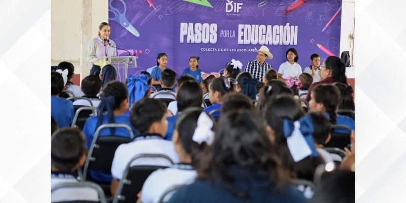 Cd. Victoria, 5 de octubre 2025. – Con la entrega de 3,500 kits de útiles escolares a niñas y niños de educación básica, la presidenta del DIF Lucy de Gattás y el alcalde de Victoria Eduardo Gattás Báez finalizaron la edición 2025 del programa “Pasos por la Educación”.