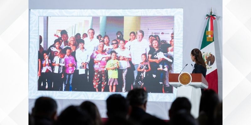Durante la transmisión, Isabel Vega Villalobos recibió las llaves de su nueva vivienda y con su pequeña hija Aída, agradecieron a la presidenta el contar con una casa propia luego de 40 años.