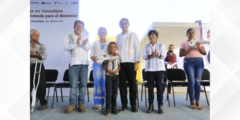 Matamoros, Tamaulipas.- Tamaulipas refrendó su liderazgo nacional en el programa de Vivienda para el Bienestar, al entregar en el desarrollo habitacional El Mezquital, 19 casas nuevas construidas por la Comisión Nacional de Vivienda para familias de pescadores, en un evento encabezado por la presidenta Claudia Sheinbaum, en enlace virtual con el gobernador Américo Villarreal Anaya.
