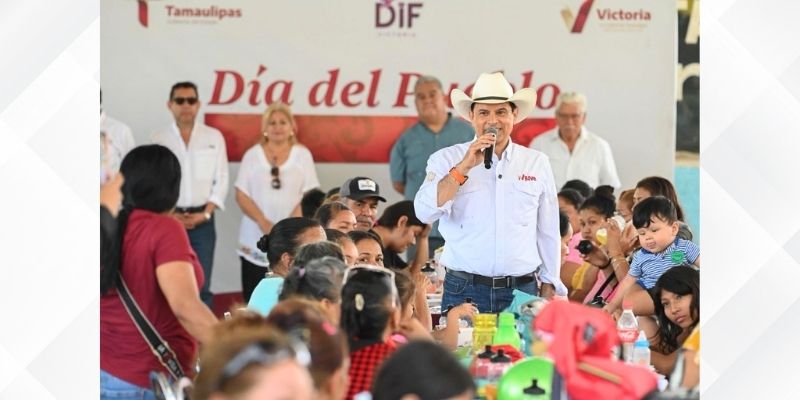 Cd. Victoria, 6 de abril de 2026. – Bajo la techumbre del ejido La Libertad, el alcalde de Victoria Eduardo Gattás Báez encabezó este fin de semana la convivencia familiar que reunió más de 400 mujeres, hombres y niños del área rural.
