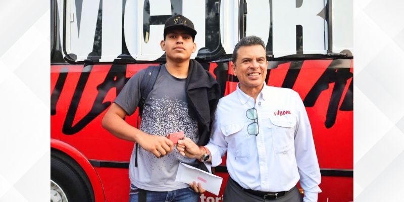 En punto de las 6 am, arribó en compañía del Jefe del Departamento de Participación de la Juventud Benjamín Martínez Ramos y el vocero de Jóvenes de Victoria Abraham Gattás Rodríguez, a la parada oficial de la unidad para hacer entrega de la tarjeta digital a los alumnos beneficiados.