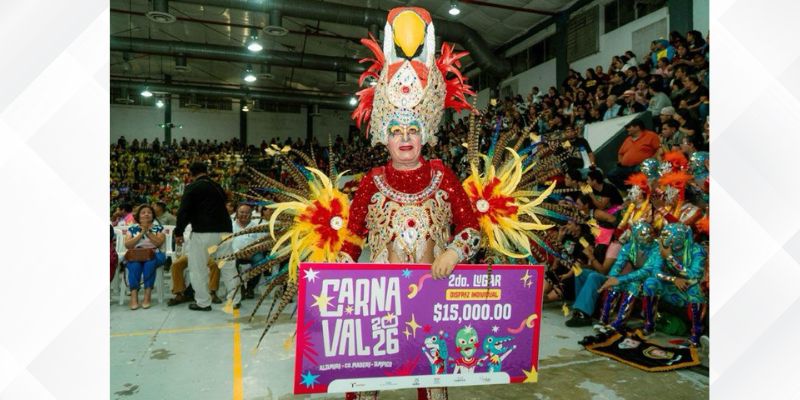 Disfraz individual primer lugar: Alebrije en Carnaval $15,000.00; segundo lugar Ave Tropical $10,000.00 y tercer lugar $5,000.00