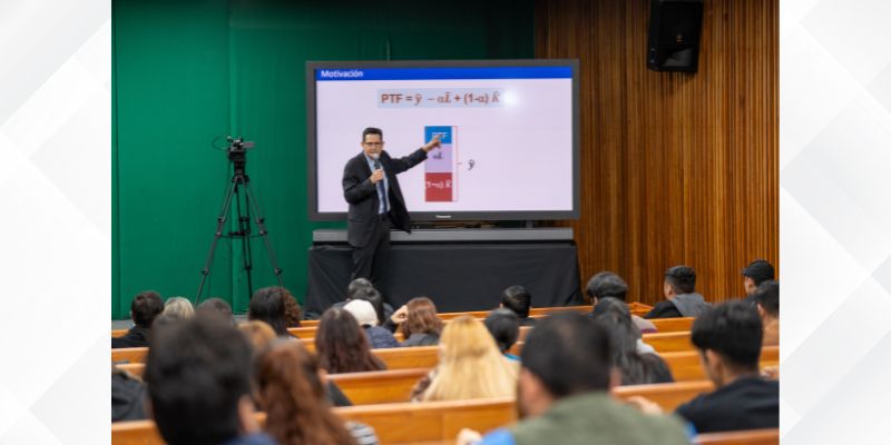 Ante docentes y estudiantes reunidos en el Centro de Excelencia de la UAT, el ponente resaltó que el crecimiento de la productividad regional es clave para lograr un incremento económico sostenido en el largo plazo, mejorar los salarios, aumentar la competitividad y reducir los precios, lo cual, contribuirá a generar un mayor valor económico y bienestar social.