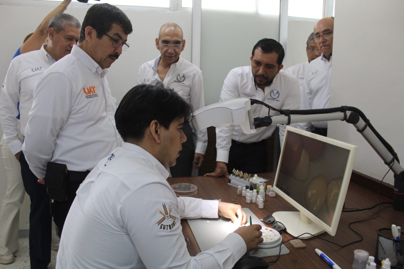 Constató también el trabajo de la carrera de Técnico Superior Universitario en Prótesis Dental y del Centro de Investigación, además de las clínicas dentales con que cuenta la UAT, cuyos servicios se ofrecen a toda la población.