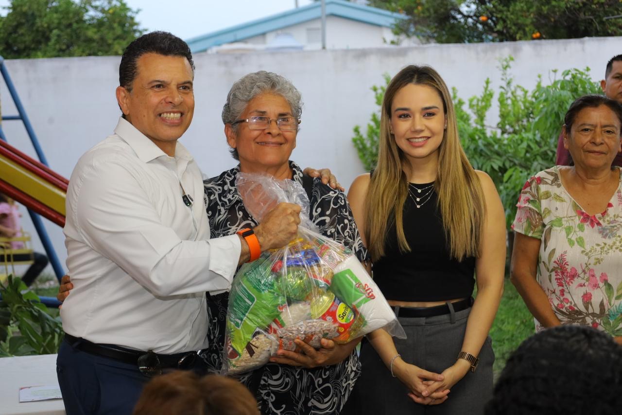 En compañía de su esposa Lucy de Gattás, presidenta del Sistema DIF Municipal, equipo de colaboradores y regidores del Cabildo, se reunió con amas y jefes de familia para entregar apoyos alimentarios, dialogar, escuchar y resolver demandas ciudadanas.