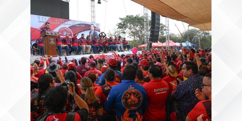 Cómo anfitrión, dió la bienvenida, junto a la Senadora de la República por Tamaulipas Olga Sosa, el Secretario de Salud en el Estado Vicente Hernández Navarro y presidentes municipales de Reynosa, Mante, Soto La Marina y Padilla, a más de 5 mil trabajadores del SNTSS de todo el Estado.