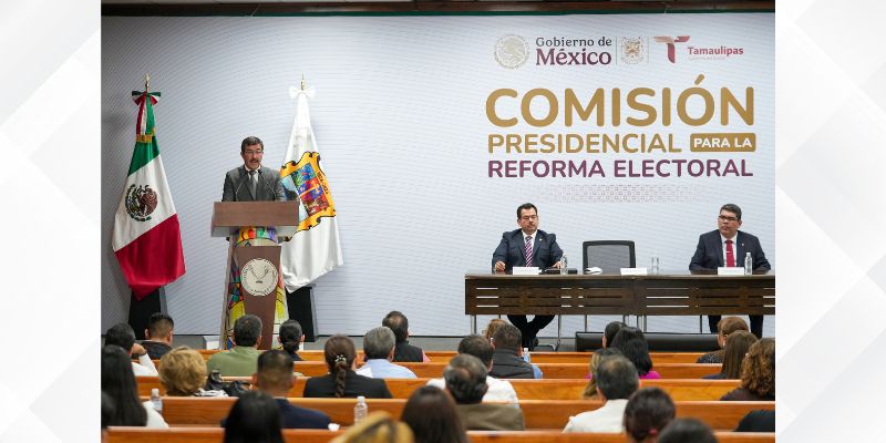 Sumados a la iniciativa del Gobierno de México, a través de la Comisión Presidencial para la Reforma Electoral, el Gobierno del Estado y la Universidad Autónoma de Tamaulipas (UAT) pusieron en marcha los Diálogos sobre la Reforma Electoral, un ejercicio académico y ciudadano que tiene como propósito fomentar la exposición, reflexión crítica y el análisis plural en torno a los retos, alcances y perspectivas del sistema democrático nacional.