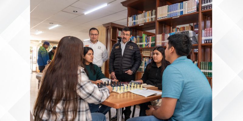 Asimismo, recorrió la biblioteca, en donde le presentaron proyectos de modernización de los servicios de consulta, así como zonas de estudio colaborativo y apoyos a estudiantes foráneos, consolidándose como un eje de equidad, inclusión y acceso al conocimiento.