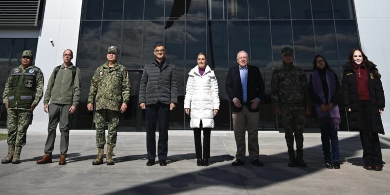 Se trató de una obra desarrollada desde una visión integral en 29 hectáreas con 320 mil metros cuadrados de construcción, generando más de 3 mil 700 empleos directos y 7 mil indirectos. Detalló que el edificio principal tiene capacidad de mil 100 personas y cuenta con 600 viviendas para trabajadores y sus familias, así como espacios de recreación. Agregó que a esta obra se suma la construcción, por parte de la Defensa Nacional, de siete secciones aduaneras en Baja California, 12 en Sonora, nueve en Chihuahua, cuatro en Coahuila y 16 en Tamaulipas, que concluyeron en 2024 y que están equipadas con aparatos de última tecnología como detectores de mercancía para evitar contrabando, laboratorios móviles de hidrocarburos, rayos X móviles, ferroviarios, vehiculares y para maletas.