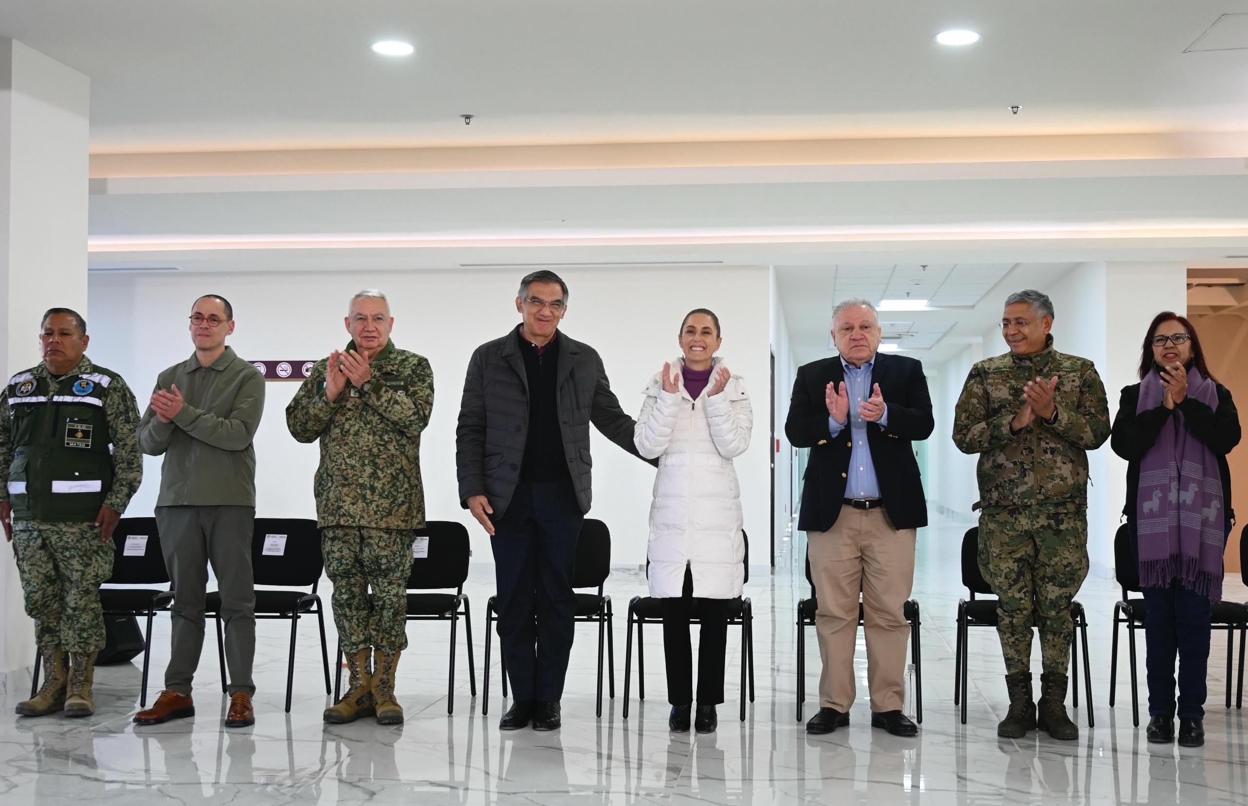 Se trató de una obra desarrollada desde una visión integral en 29 hectáreas con 320 mil metros cuadrados de construcción, generando más de 3 mil 700 empleos directos y 7 mil indirectos. Detalló que el edificio principal tiene capacidad de mil 100 personas y cuenta con 600 viviendas para trabajadores y sus familias, así como espacios de recreación. Agregó que a esta obra se suma la construcción, por parte de la Defensa Nacional, de siete secciones aduaneras en Baja California, 12 en Sonora, nueve en Chihuahua, cuatro en Coahuila y 16 en Tamaulipas, que concluyeron en 2024 y que están equipadas con aparatos de última tecnología como detectores de mercancía para evitar contrabando, laboratorios móviles de hidrocarburos, rayos X móviles, ferroviarios, vehiculares y para maletas.