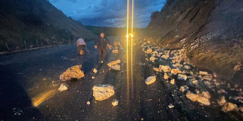 Guardia Estatal y ciudadanía retiran piedras de la Carretera Rumbo Nuevo