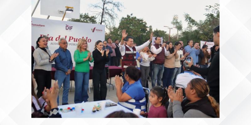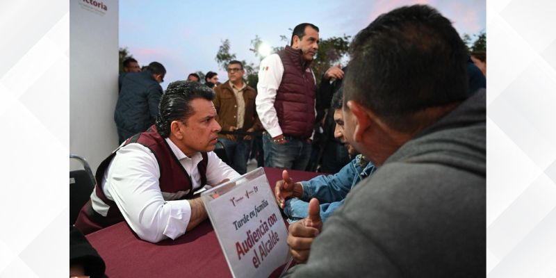 Cd. Victoria, 15 de enero de 2026. – Con la mesa de audiencia pública, servicios gubernamentales y productos a bajo costo, el alcalde de Victoria Lalo Gattás y su esposa Lucy de Gattás visitaron la colonia El Mirador con la jornada Día del Pueblo.