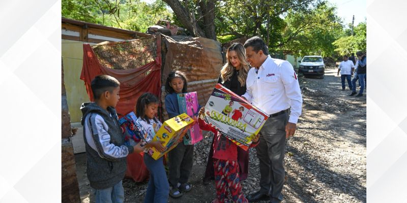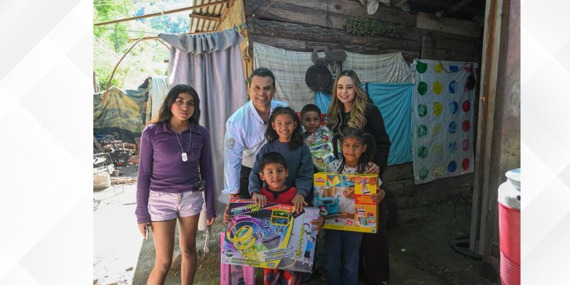 Cd. Victoria, 23 de diciembre 2025. – Cómo parte de la campaña “Ayudemos a Santa 2025” el alcalde de Victoria Lalo Gattás y su esposa Lucy de Gattás, presidenta del Sistema DIF Municipal, recorrieron hogares de las colonias Rosalinda Guerrero y Constitución del 17 para obsequiar juguetes y convivir con familias previo al festejo de la navidad.