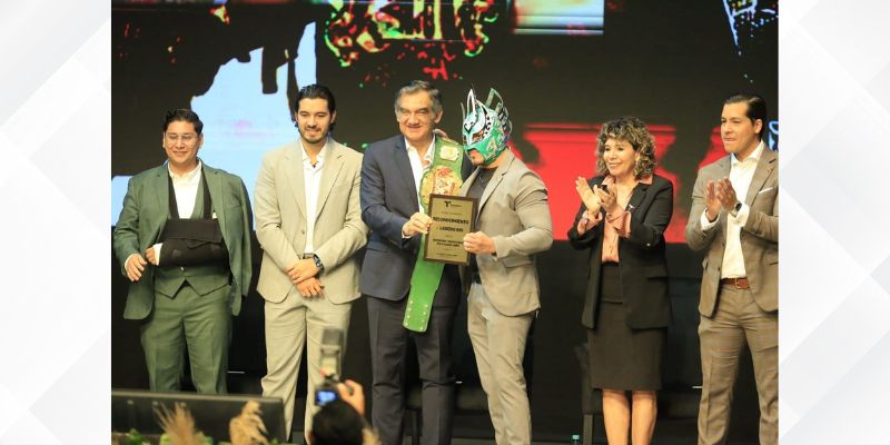 El gobernador Américo Villarreal entregó un reconocimiento especial a Laredo Kid, una destacada figura de Tamaulipas en la lucha libre profesional, múltiple campeón en diferentes categorías, además de haber triunfado en eventos internacionales, en Estados Unidos y Japón.