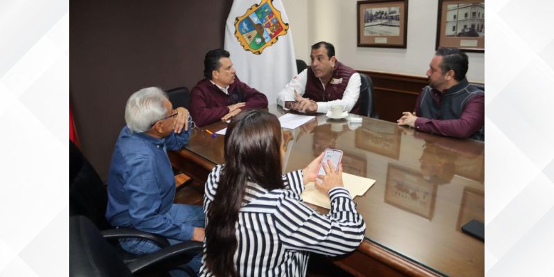 En reunión con los secretarios de Obras Públicas, Eusebio Alfaro Reyna, del Ayuntamiento, Hugo Reséndez Silva, y coordinador de Plan de Bacheo, Jorge Bello Méndez, encabezó la revisión de la propuesta de acciones que presentará a la comisión del Cabildo local.