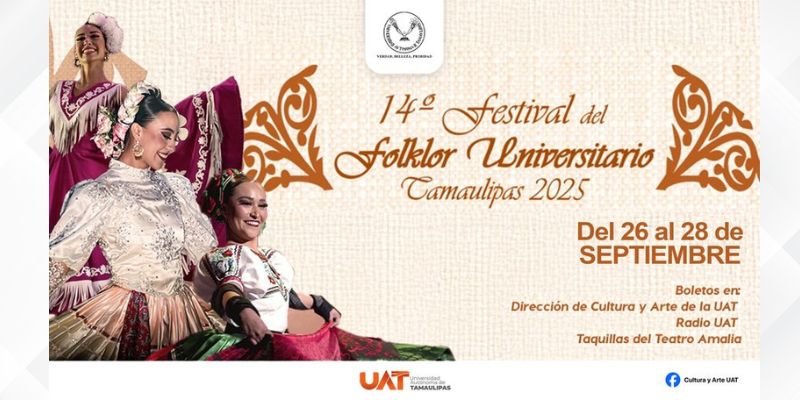 En el marco de su compromiso con la difusión de la cultura y las artes, y la vinculación con la sociedad, la Universidad Autónoma de Tamaulipas (UAT) organiza el 14.º Festival del Folklor Universitario Tamaulipas 2025, el cual se llevará a cabo del 26 al 28 de septiembre, en Ciudad Victoria.