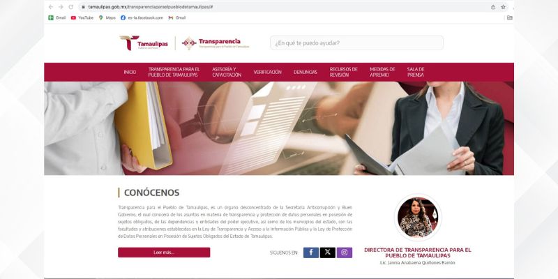 “El contenido relevante y al cual de manera legal debemos atender migra a https://www.tamaulipas.gob.mx/transparenciaparaelpueblodetamaulipas/#”, menciona Jannia Anabaena Quiñones Barrón.