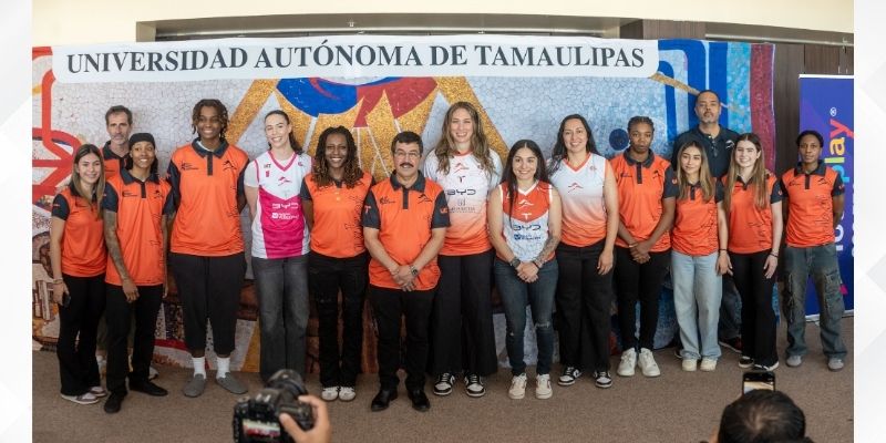 Durante la ceremonia, realizada en el Edificio Centro de Gestión del Conocimiento del Campus Victoria, el rector de la UAT dio la bienvenida al nuevo entrenador en jefe, Jordi Vizcaíno, y a las jugadoras que, dijo, representarán con orgullo los colores universitarios.