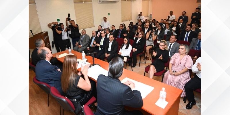En el acto, estuvieron presentes la presidenta del Poder Judicial de Tamaulipas Tania Contreras López, el Rector de la UAT Dámaso Anaya Alvarado, el Magistrado Rafael Anzures Uribe de la Segunda Sección de la Sala Superior del TFJA, el coordinador de magistrados del Décimo Noveno Circuito del Poder Judicial de la Federación David Cerda Zúñiga, y Jorge Luis Beas Gámez, subsecretario de Legalidad y Servicios Gubernamentales del Estado.