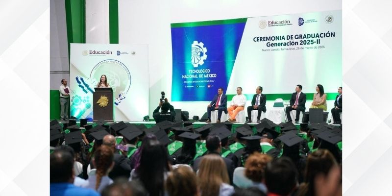 En el marco de la “Ceremonia de Graduación 2025-II” del Tecnológico Nacional de México Campus Nuevo Laredo, la presidenta municipal, Carmen Lilia Canturosas Villarreal, reiteró su compromiso con las y los jóvenes y con el fortalecimiento de la educación en todos sus niveles, como eje clave para el desarrollo de la ciudad.