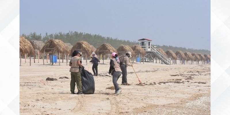 Con la participación de brigadistas del Programa de Empleo Temporal del poblado La Pesca, la SEDUMA fortalece en Tamaulipas una acción intersectorial de limpieza, separación y manejo adecuado del sargazo y residuos sólidos, sumando esfuerzos con el Gobierno.
