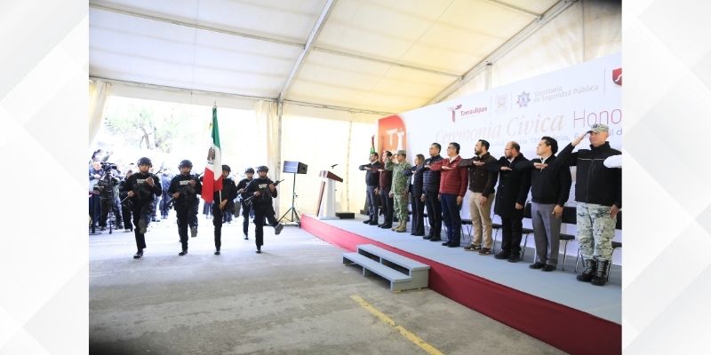 Acompañaron al gobernador en esta ceremonia: Tania Contreras López, presidenta del Supremo Tribunal de Justicia; Humberto Armando Prieto Herrera, presidente de la Junta de Gobierno del Congreso del Estado; Sergio Ojeda, presidente de la Mesa Directiva del Congreso; Héctor Villegas González, secretario general de Gobierno; Willy Zúñiga Castillo, secretario ejecutivo del Sistema Estatal de Seguridad Pública; Eduardo Govea Orozco, fiscal general de Justicia; Adolfo Amparán Hernández, coordinador estatal de la Guardia Nacional en Tamaulipas, y Gerardo Martínez Andrade, en representación de la 48 Zona Militar.