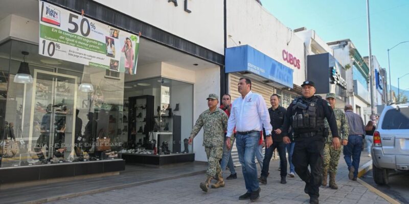 En el trayecto hasta el Centro de Mando instalado en la plaza Hidalgo, dialogaron con comerciantes y consumidores para percibir la confianza en el dispositivo de seguridad, en el que participan más de 300 elementos de la SEDENA, Marina, Armada de México, Guardia Nacional, Guardia Estatal, Protección Civil, Tránsito y Vialidad.