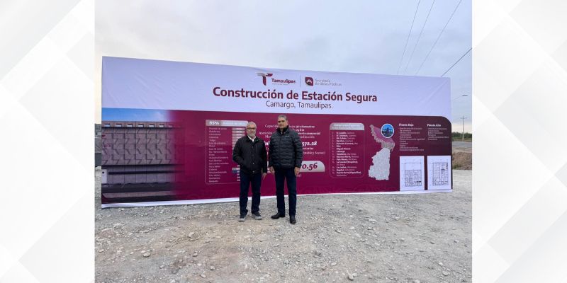Camargo, Tamaulipas.– Como parte del compromiso institucional de fortalecer la infraestructura en materia de seguridad pública, el secretario de Seguridad Pública de Tamaulipas, Carlos Arturo Pancardo Escudero, supervisó la construcción de las Estaciones Seguras que se desarrollan en la zona fronteriza del estado.