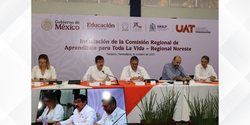 El rector de la Universidad Autónoma de Tamaulipas (UAT), Dámaso Anaya Alvarado, presidió la instalación de la Comisión Regional de Aprendizaje para Toda la Vida-Región Noreste de la Asociación Nacional de Universidades e Instituciones de Educación Superior (ANUIES), iniciativa que promueve la colaboración entre instituciones para fortalecer la educación continua, la innovación académica y la pertinencia de la formación profesional.