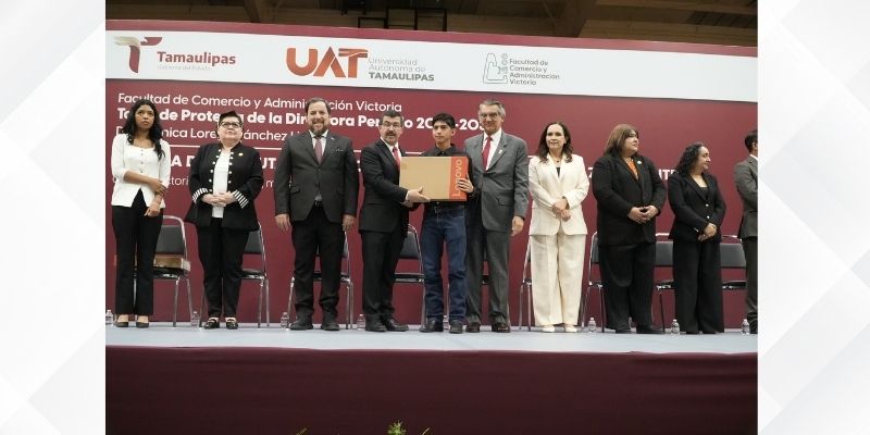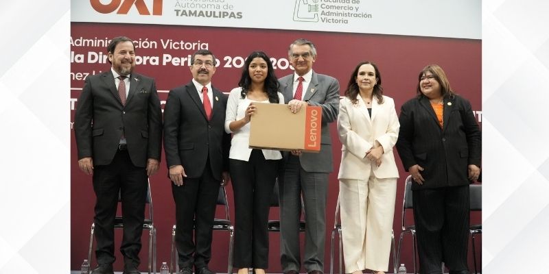 En este marco, hicieron entrega de computadoras portátiles a estudiantes de las facultades, unidades académicas y preparatorias de la UAT de Ciudad Victoria y Ciudad Mante, con el objetivo de fortalecer sus herramientas de aprendizaje.