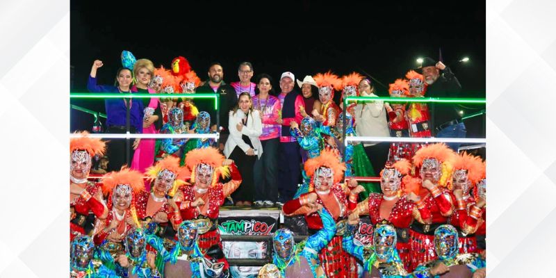 El secretario de Turismo, Benjamín Hernández Rodríguez, junto a la presidenta municipal de Tampico, Mónica Villarreal Anaya y los alcaldes de Madero, Erasmo González Robledo y Altamira, Armando Martínez Manríquez, se unieron a la fiesta entre carros alegóricos, comparsas vibrantes, disfraces espectaculares y grupos de animación.